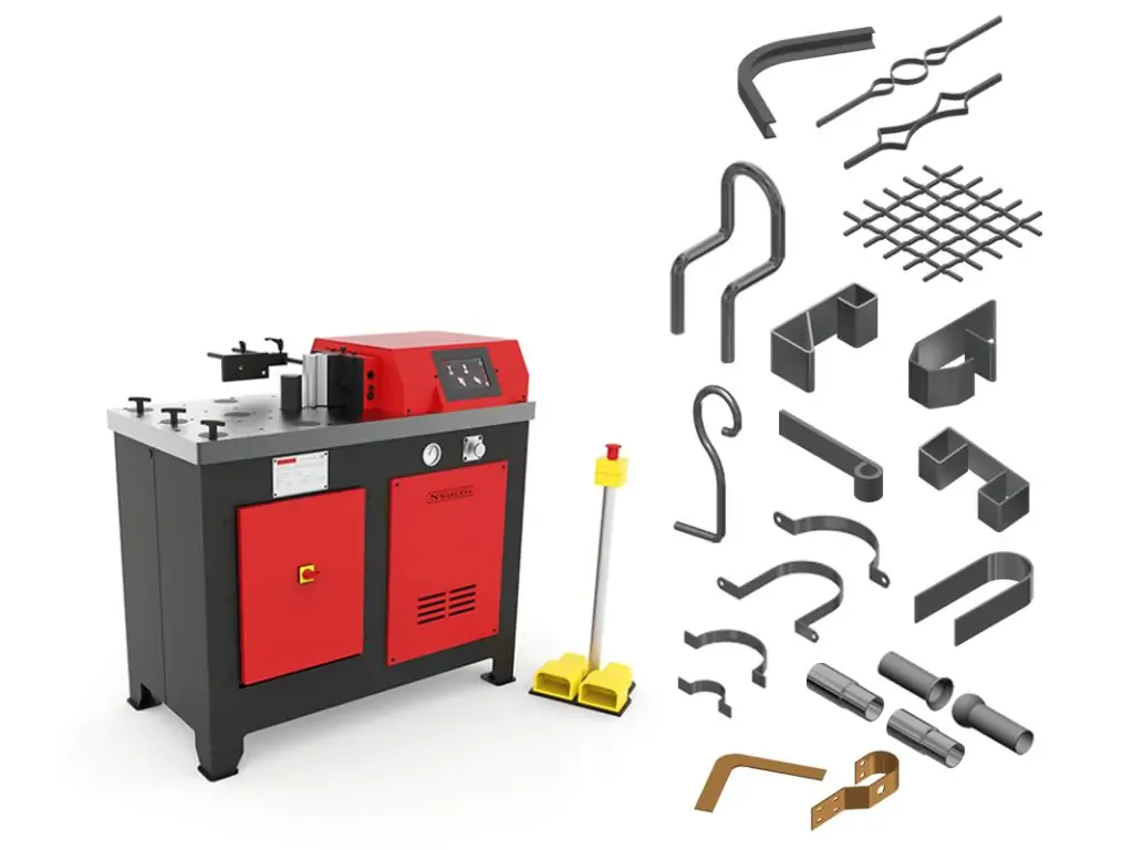 - - Згинання прутків дозволяє оператору виготовляти різні гаки, а також надавати форму балясини квадратного або круглого перерізу, а також виготовляти труби для деталей холодного кування, перил, парканів, воріт, дверей...