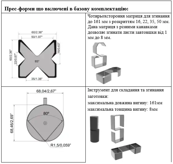 - - Згинання без ризику пошкодження пуансонів та матриць при роботі з товстими матеріалами, на відміну від традиційних листозгинальних пресів.
