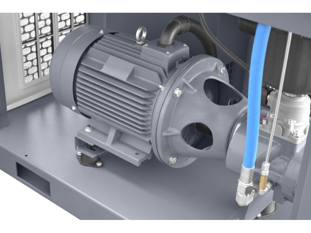 низький рівень шуму гвинтового компресора завдяки спеціально розробленому звукоізоляційному кожуху (шумоізоляційні плити);