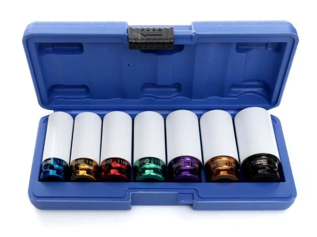 - Хромована обробка різних кольорів для легкого визначення розмірів розеток