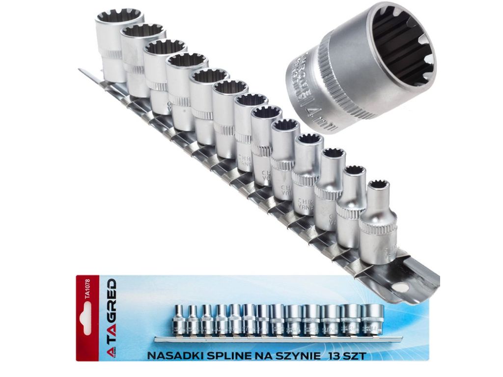 Всі елементи набору виготовлені з високоякісної Cr-V сталі. У комплект входить рейка, яку можна закріпити на стіні.