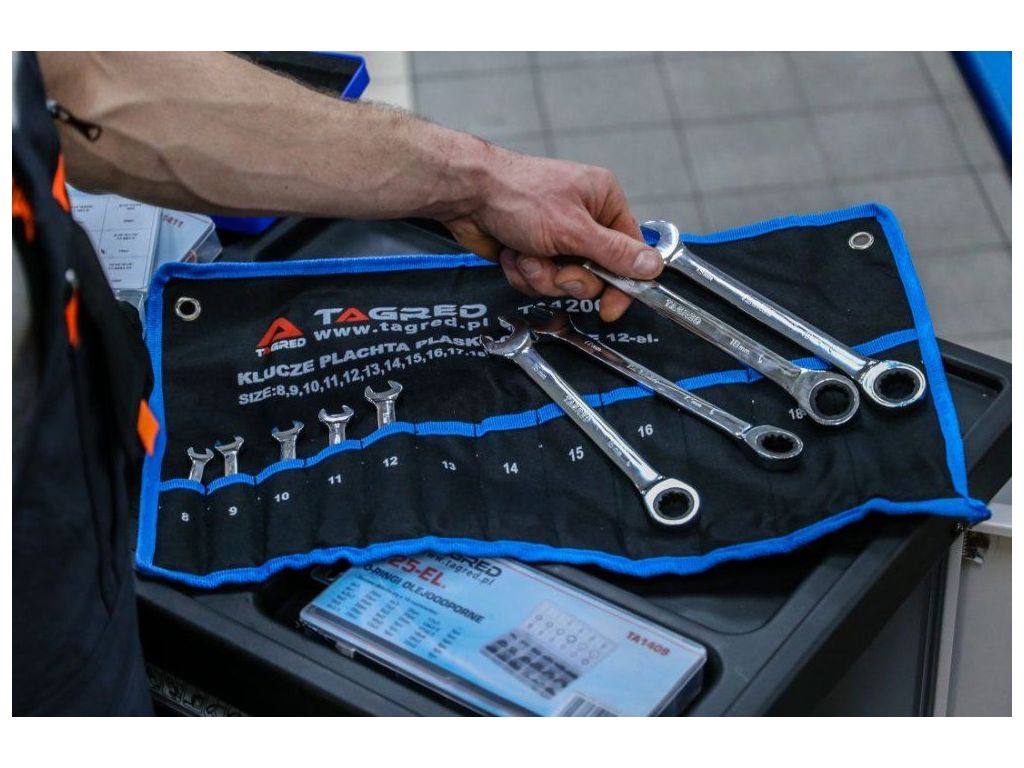 Набір ключів, 12 шт TAGRED TA1200 характеризується високою якістю виготовлення, що робить його придатним для найскладніших умов роботи з великими навантаженнями. Ключі відповідають стандарту DIN 3113 і є ідеальним вибором для професійних механічних та автомобільних майстерень. До набору додається дуже практичний і міцний кейс - "полотно" для зберігання, який дозволить тримати порядок під контролем і який можна, наприклад, згорнути в рулон або повісити на стіну.