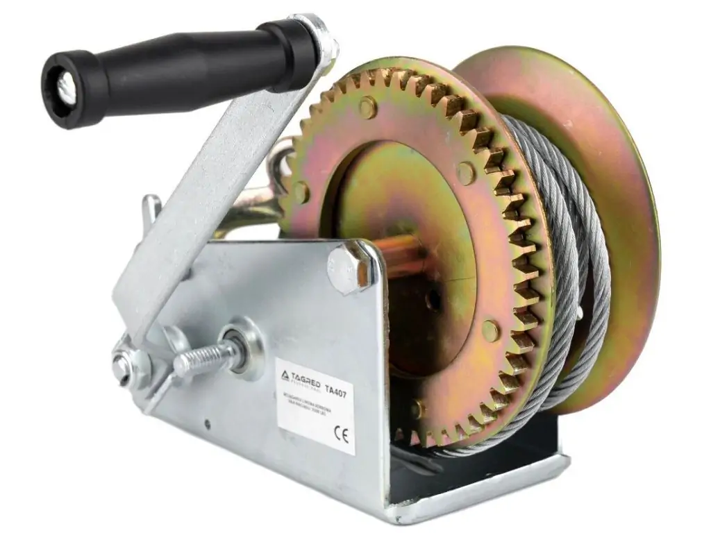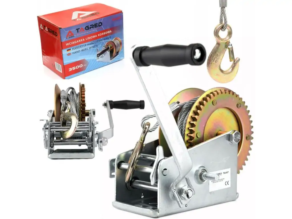 Кривошипна лебідка TAGRED TA407 - виготовлена з високоякісної конструкційної сталі. Литий гак має поворотну пружину. Для керування пристроєм використовується ручна рукоятка, а також храповий механізм для втягування та витягування предметів. Ідеальне обладнання для витягування, зв'язування, закріплення та перетягування важких і великих предметів. Має блокувальний гак та запобіжник з храповою пружиною із загартованої сталі.
