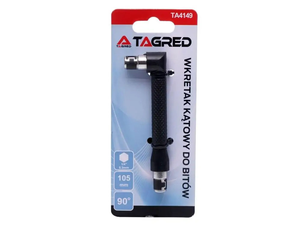 Кутова викрутка TAGRED TA4149 - ідеальний інструмент для відкручування і загвинчування в найрізноманітніших сферах застосування, де традиційні рішення не спрацьовують. Викрутка має двосторонній торцевий шліц з короткою насадкою під кутом 90° і довшою прямою насадкою.