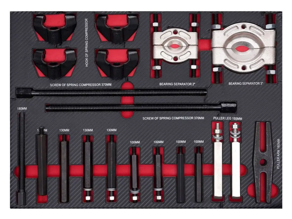 - Компресори пружин для професійного обслуговування шасі, адаптовані до всіх типів пружин у стійках McPherson і незалежних пружин