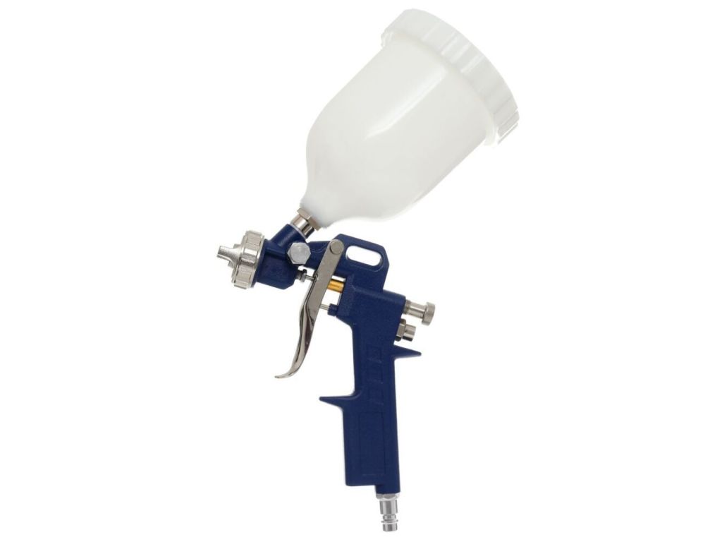 - Лакувальний пістолет з верхнім резервуаром ідеально підходить для точного фарбування лаків, акрилових і водоемульсійних фарб. Чудово працює при фарбуванні автомобіля.