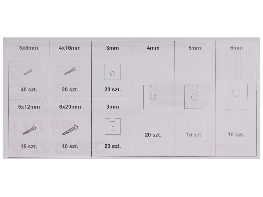 Набір гвинтів та шайб для корпусних робіт TAGRED TA4097 - складається з 150 штук корпусних гвинтів і шайб, розміром від M3x8 мм до M6x20 мм. Гвинти і шайби поміщені в зручний кейс.