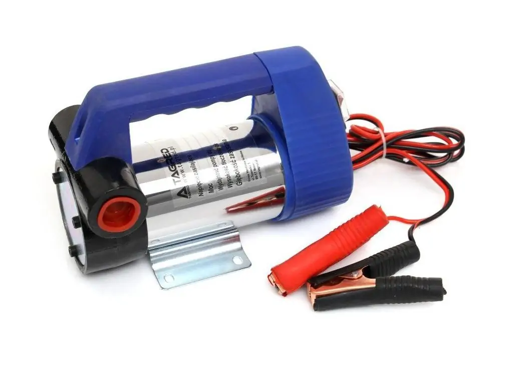 Насос для зливу дизеля, масла, мазуту TAGRED TA560/DYB - для перекачування дизельного палива та середовищ з в'язкістю до 5 cSt (ISO VG 22) при робочій температурі. Для використання як в майстернях, так і в домашніх умовах. Можливість підключення живлення до автомобільного акумулятора дозволяє використовувати його навіть в дорозі. Оснащений клапаном і зовнішнім фільтром. Механічні ущільнення насоса дозволяють працювати при низьких температурах.