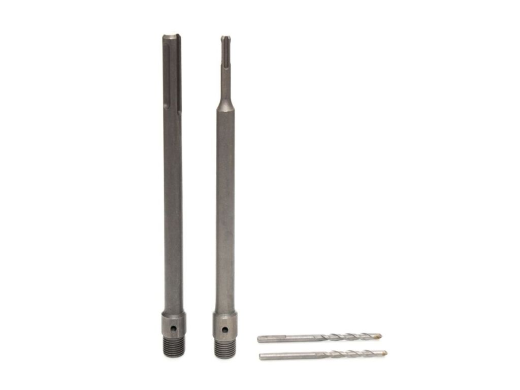 Крім того, кожна фреза має подовжувач, що дозволяє встановлювати її як в патрони SDS+, так і в стандартні затискні головки будь-яких дрилів.