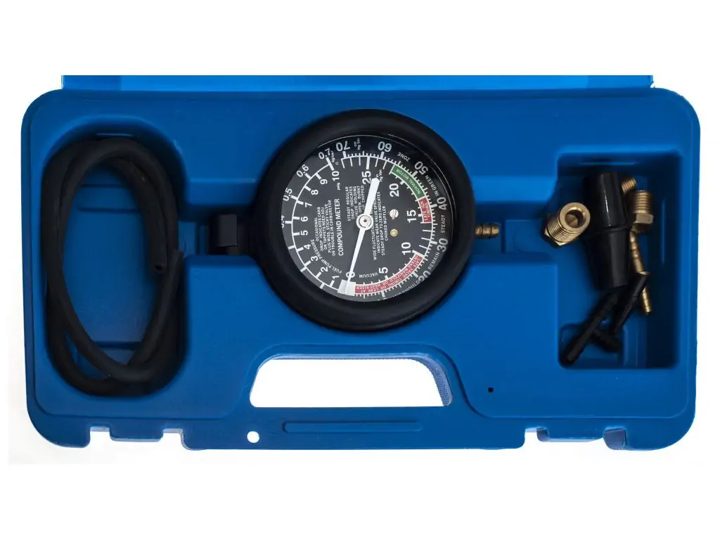 Тестер тиску паливного насоса, вакуумметр TAGRED TA1391 - використовується для для вакуумних систем, вакууму в карбюраторних системах, впускних колекторах, SERVO, для перевірки систем підсилення гальм (вакуумних насосів), селеноїдних клапанів, електричного вакууму, для виявлення негерметичності інжекторів і паливних насосів, а також для діагностики клапанів.