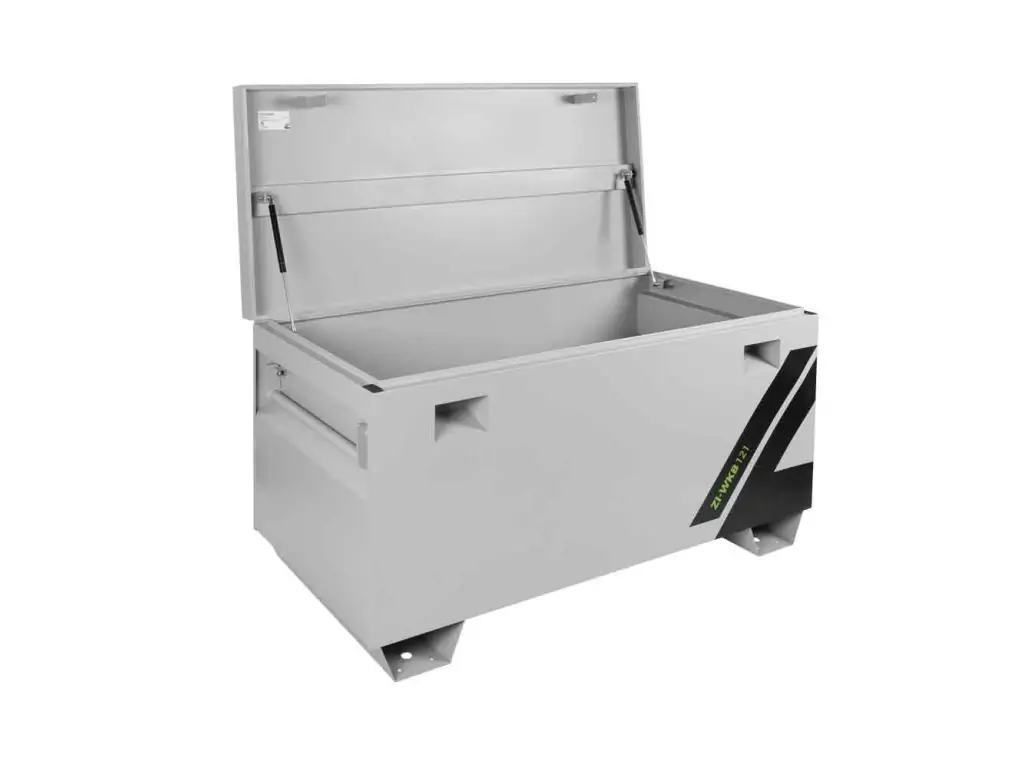 Ящик для інструментів ZI-WKB121, виготовлений з металу та пофарбований порошковою фарбою RAL9006, є універсальним. Ідеально підходить для зберігання інструментів та обладнання. Його можна транспортувати за допомогою вилкового навантажувача/навантажувача завдяки металевим ніжкам або однією чи двома людьми за допомогою міцних ручок. Можна штабелювати, а також використовувати на вашому транспортері/пікапі, прикріпивши його до місця завантаження (монтажний матеріал і отвори для свердління необхідно підготувати та забезпечити самостійно).