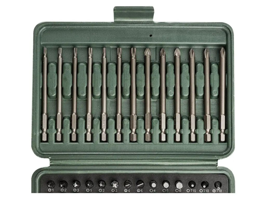 Біти в наборі підходять для більшості сучасних гвинтів, включаючи плоскі, шпинделі PH і PZ, шестигранники, а також Torx та Torx із захистом.