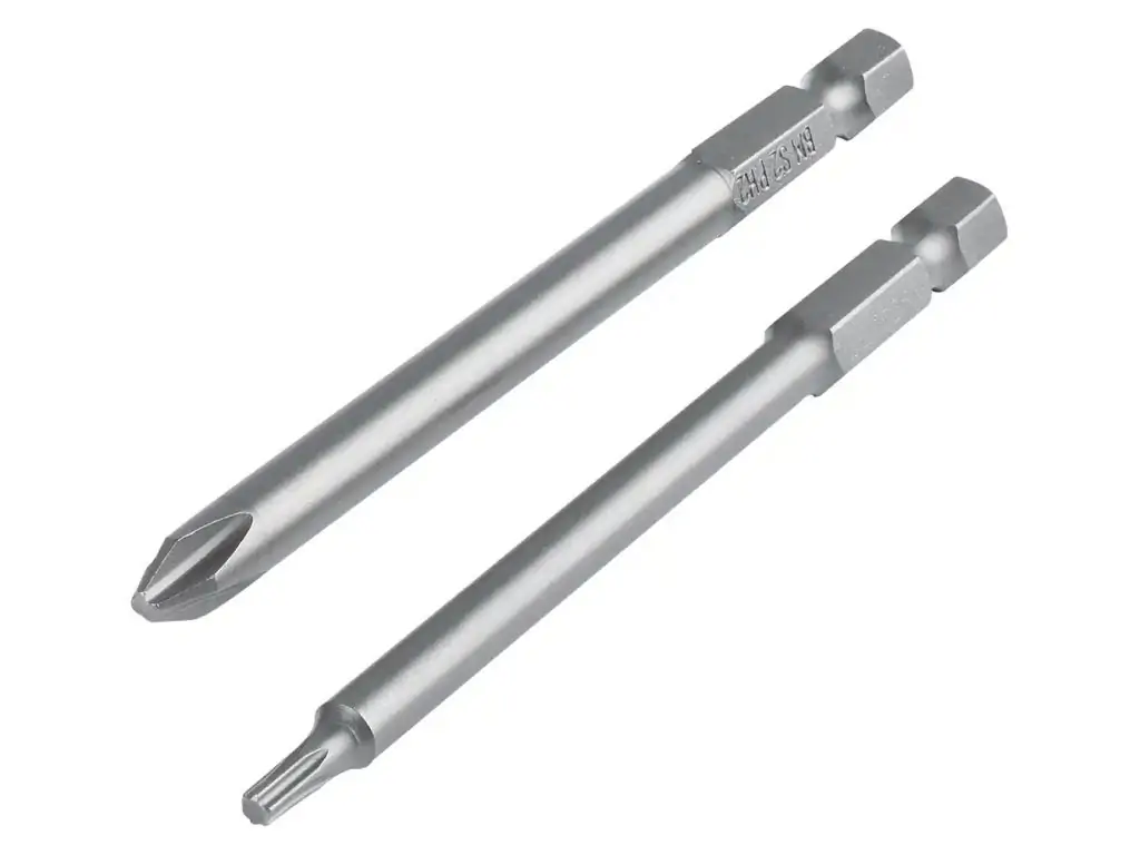 Виготовлені із загартованої сталі S2, ці біти перевищують твердість і стійкість до тиску порівняно з CrV сталлю (коефіцієнт твердості - 59 HRC, міцність – 220 кг/см²), що забезпечує їх високу надійність та довговічність.