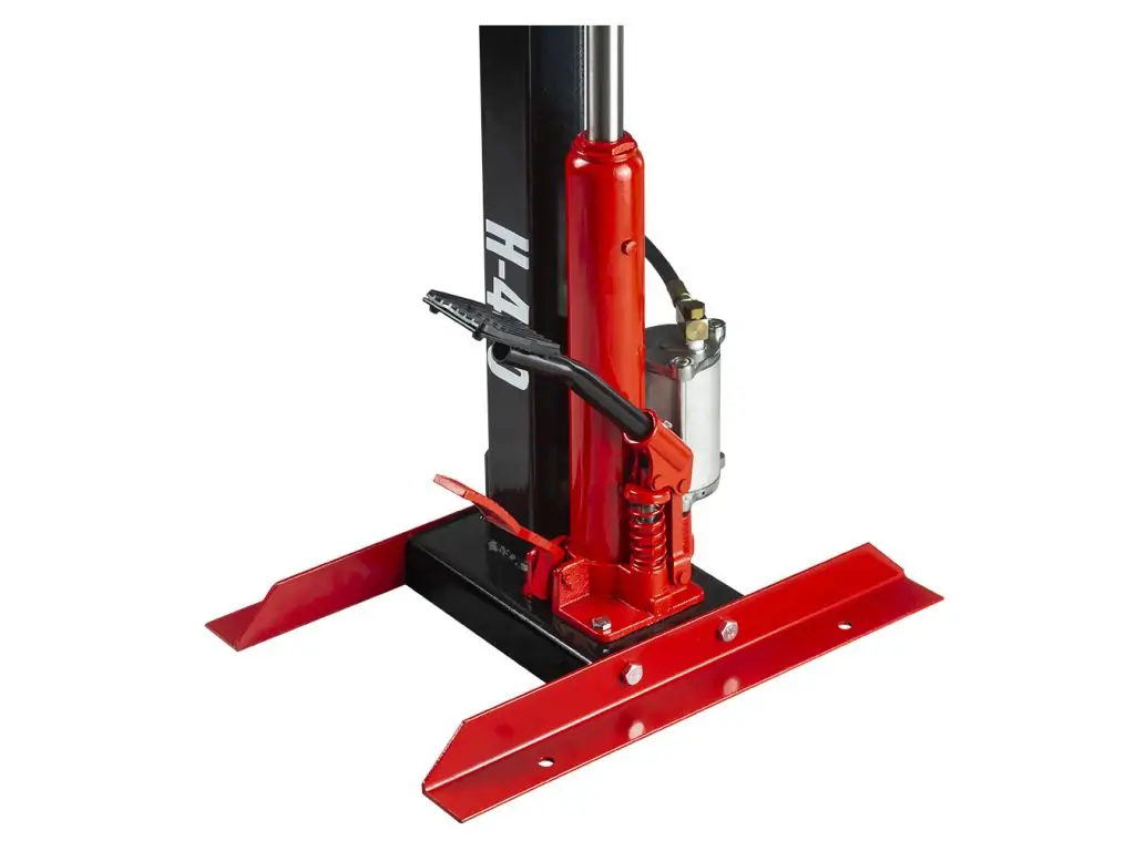 Рух циліндра виконується за допомогою гідравлічного приводу. Для полегшення і пришвидшення роботи є можливість підключити компресор і використовувати стиснене повітря. Керування пристроєм здійснюється за допомогою 2 ножних педалей, одна з яких відповідає за підйом, а інша - за опускання циліндра. Для регулювання плеча з головою в колоні є 8 отворів. Завдяки міцній чавунній конструкції і дрібній різьбі нитки така стяжка пружин надзвичайно довговічна і надійна у роботі.