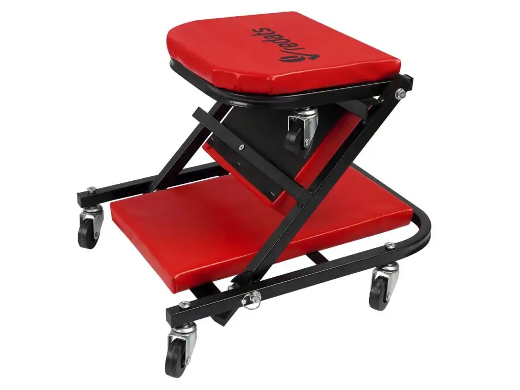 Лежанка-стілець для майстерні 2в1 REDATS - це універсальне пристосування для СТО та майстерень, яке покращує зручність роботи в сидячому положенні або лежачи під автомобілем чи обладнанням. Трансформація між режимами здійснюється за допомогою універсальної панелі: у повністю горизонтальному положенні вона служить лежанкою, а при підйомі передньої частини автоматично фіксується у встановленому положенні і стає стільцем. Розмір лежанки становить 930х420 мм (ДхШ), висота сидіння - 375 мм. Витримує навантаження до 130 кг.