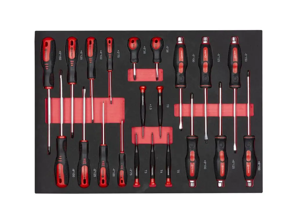 Візок з інструментом REDATS 7+2 стане відмінним придбанням для будь-якої ремонтної майстерні, адже він зручний, надійний і повністю укомплектований необхідним для робіт інструментом у кількості 258 одиниць. 7 містких ящиків з шарикопідшипниковими висувними механізмами легко відкриваються, тому ви швидко отримаєте доступ до потрібних інструментів. Поролонові ложементи запобігають зміщенню інструментів під час транспортування, а центральний замок дозволяє одним рухом закрити всі ящики. 2 перфоровані стінки, одна з яких висувна, а друга - бічна і закривається металевими дверцятами, дають змогу зберігати під рукою часто використовуваний інструмент.