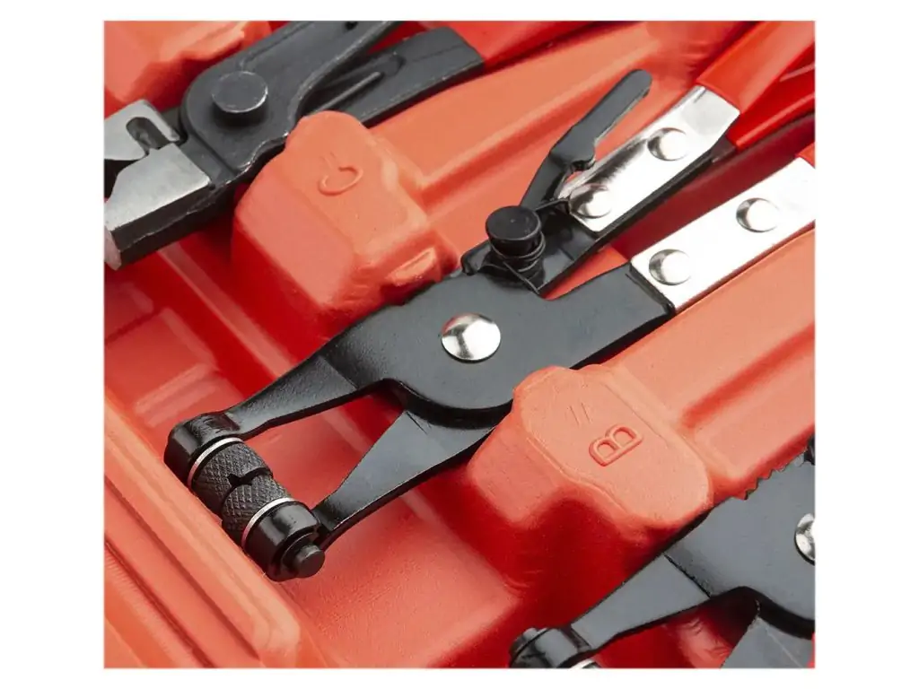 - Кліщі для хомутів з поворотними рифленими губками (5 фіксованих положень)