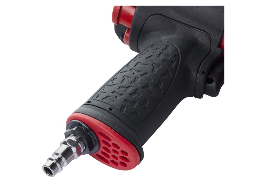 4 режими затягування і 1 - відкручування з можливістю регулювання однією рукою та швидка зміна напрямку обертання за допомогою перемикача дають змогу за лічені секунди налаштувати інструмент під конкретне завдання. Корпус виготовлений з приємного на дотик композитного матеріалу, що, разом із вагою всього 2,3 кг, робить цей потужний пневмогайковерт надзвичайно зручним в експлуатації.