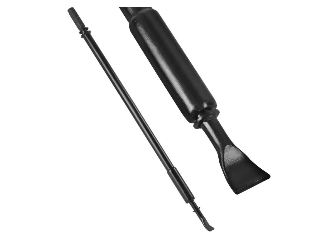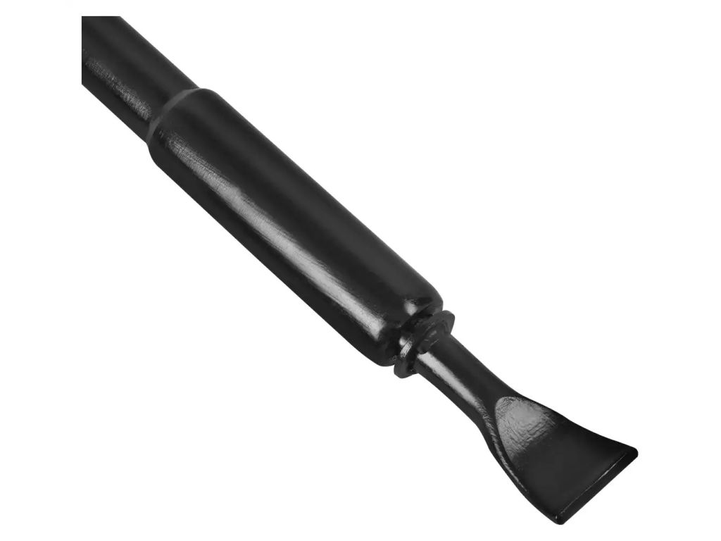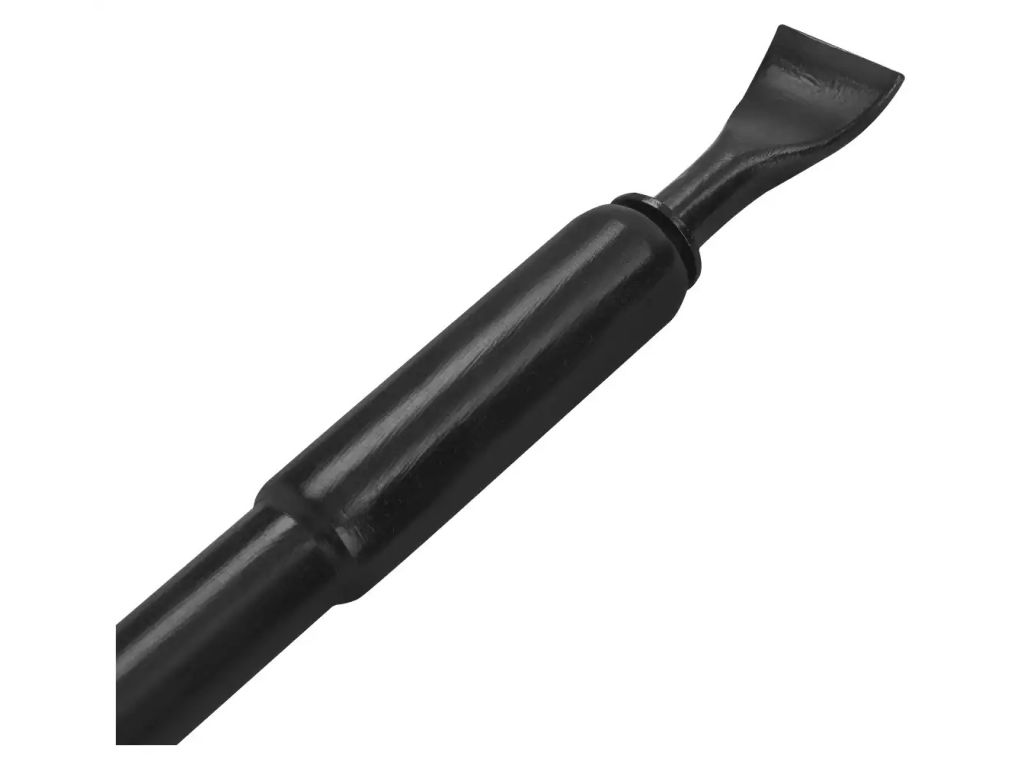 Лапа виготовлена з армованої сталі і має клиноподібну форму з увігнутим профілем та закругленими краями, завдяки чому легко заходить між бортом шини і ободом колеса без ризику пошкодження гуми. Лапа жорстко інтегрована в кінець важеля, що забезпечує максимальну передачу сили і цілісність конструкції при високих навантаженнях. Такий ручний бортолом з регульованою довжиною замінює кілька інструментів і не потребує компресора та електрики, тому буде вигідним придбанням для шиномонтажного сервісу.