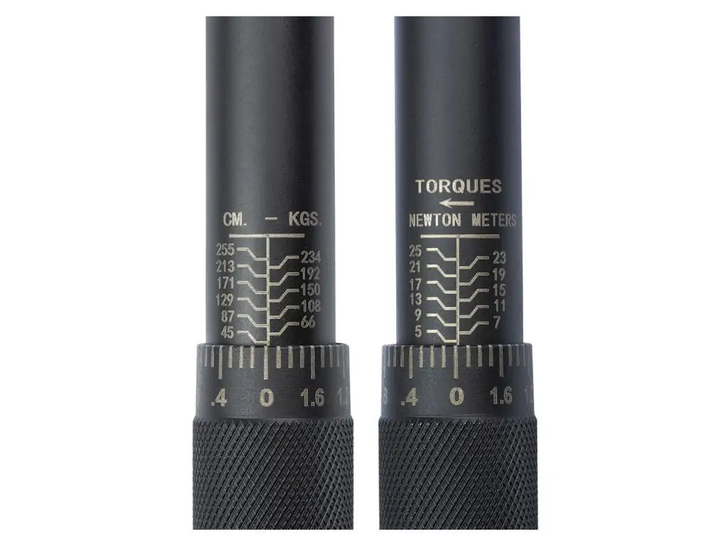 Кліковий механізм забезпечує простий і надійний контроль режиму затягування. Зручний перемикач напрямку обертання дає змогу швидко змінити тип операції. Розташований на кінці ручки фіксатор блокує механізм, тому налаштоване зусилля не зіб'ється в процесі роботи. Нанесена за допомогою лазерного гравіювання дворівнева шкала (основна вертикальна на корпусі та допоміжна горизонтальна на ручці) гарантує високу точність налаштувань. Завдяки храповому механізму на 24 зубці, цей динамометричний ключ 1/4” зручно використовувати в обмеженому просторі.