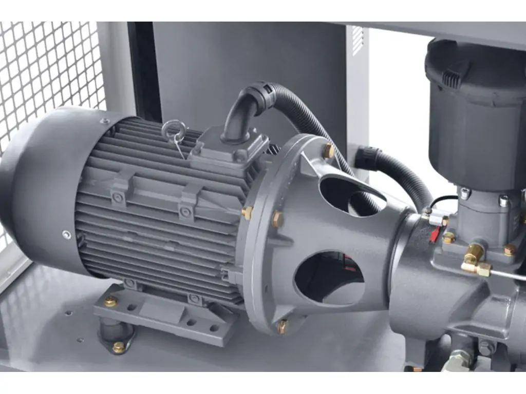 у компресорі застосовано надійне та безпечне рішення, що являє собою пряму передачу приводу між двигуном та гвинтовим механізмом (через так звану кулачкову муфту), що забезпечує: високий ефективний ККД; більш ефективне вирівнювання вібрації; усунення необхідності у регулюванні, що виникає при традиційній ремінній передачі;