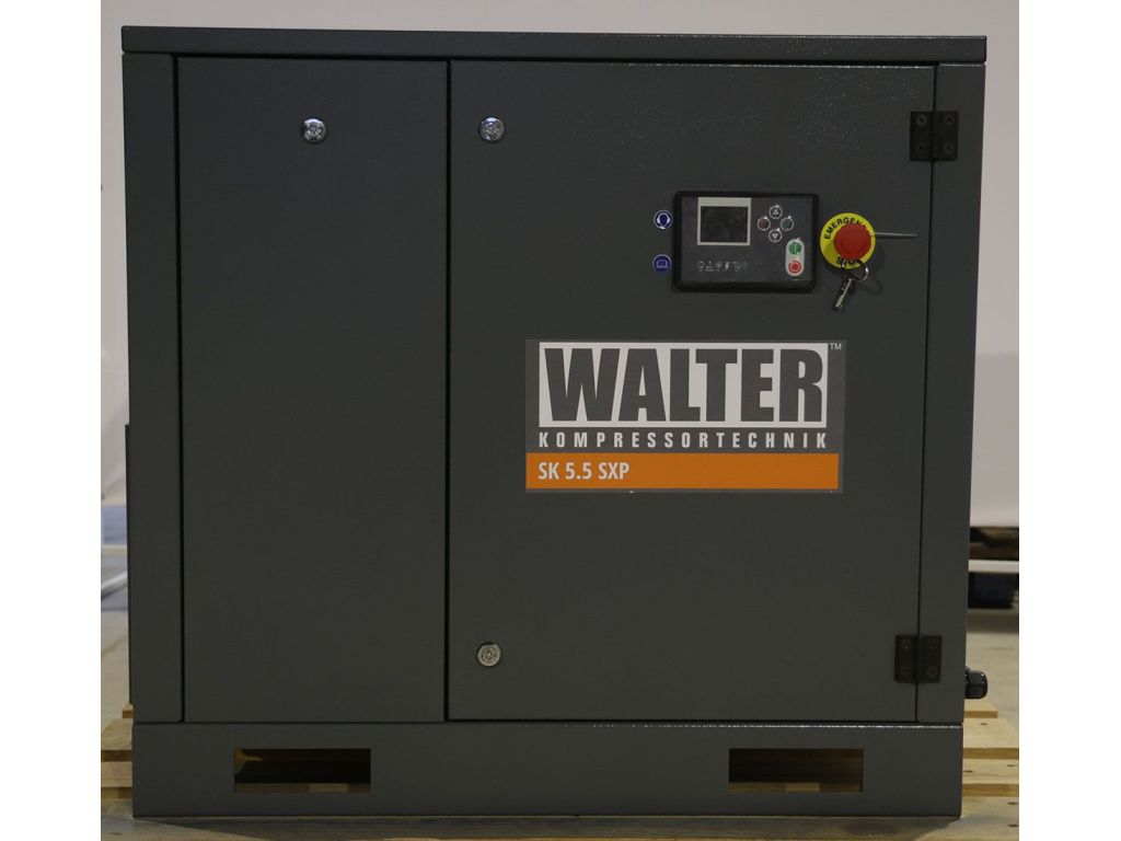 Гвинтовий компресор з ремінним приводом WALTER SK 5,5 SXP з продуктивністю 700 л/ хв при 10 Бар здатний тривалий час підтримувати стабільну роботу потужного пневматичного обладнання і відмінно підходить для промислового застосування. Працює від трифазної мережі 400 В.