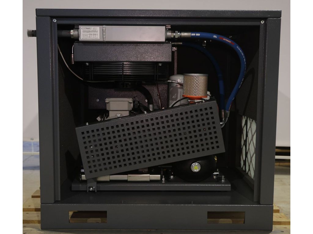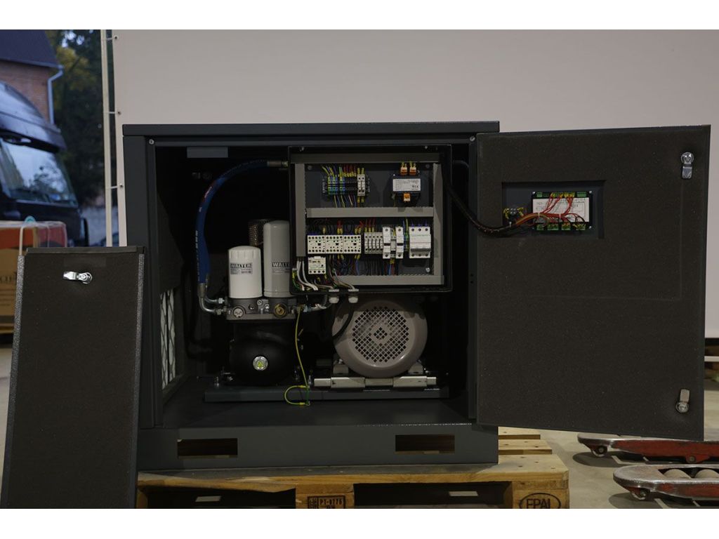 Оснащений надійним двигуном потужністю 5,5 кВт. Тиха робота і мінімум вібрацій завдяки шумоізольованому корпусу. Автоматична система управління дає змогу зручно відстежувати і коригувати параметри роботи. Виготовлений з якісних компонентів європейського походження, цей компресор характеризується надзвичайною надійністю і тривалим терміном служби.