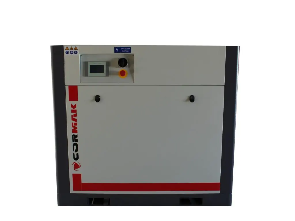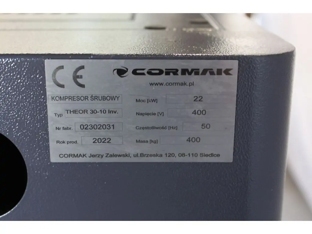 Гвинтовий компресор THEOR 30, оснащений інвертором від польського бренду CORMAK, серія THEOR - це найсучасніші рішення, що використовуються в пневматиці в поєднанні з використанням високоякісних матеріалів і компонентів. Низькі експлуатаційні витрати, зручність у використанні, ергономічна та міцна конструкція та висока ефективність пристрою гарантують ефективну та безперебійну роботу.