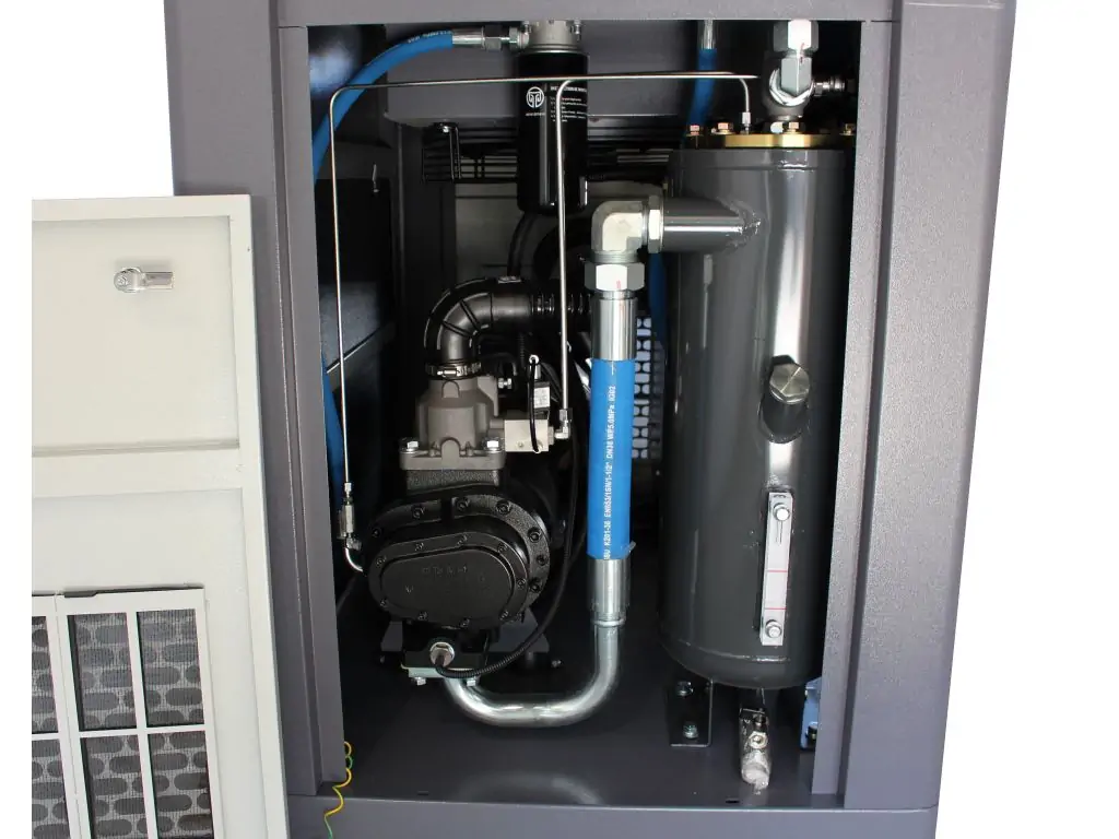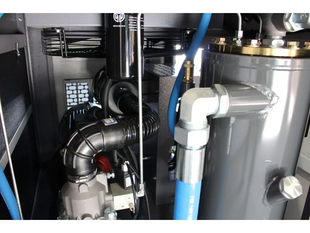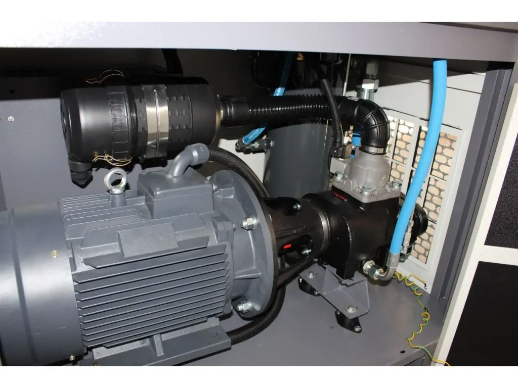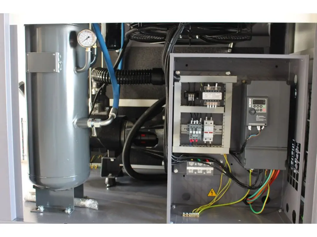 низький рівень шуму гвинтового компресора завдяки спеціально розробленому звукоізоляційному кожуху (шумоізоляційні плити);