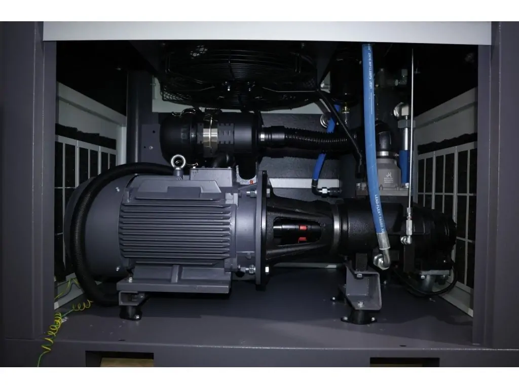 Надійний і витривалий асинхронний двигун потужністю 22 кВт та із захистом IP55 зберігає високу продуктивність навіть при важких умовах роботи. Товстостінний, стійкий до пошкоджень і корозії сталевий корпус має виняткову надійність і довговічність, складається з основної рами та знімних панелей, що забезпечує легкий доступ до внутрішніх компонентів для обслуговування. Завдяки якісній шумоізоляції корпусу компресор працює дуже тихо, тому не створює дискомфорту для персоналу. Цей інверторний гвинтовий компресор буде вигідним доповненням великих виробництв, які потребують стабільної подачі стисненого повітря.