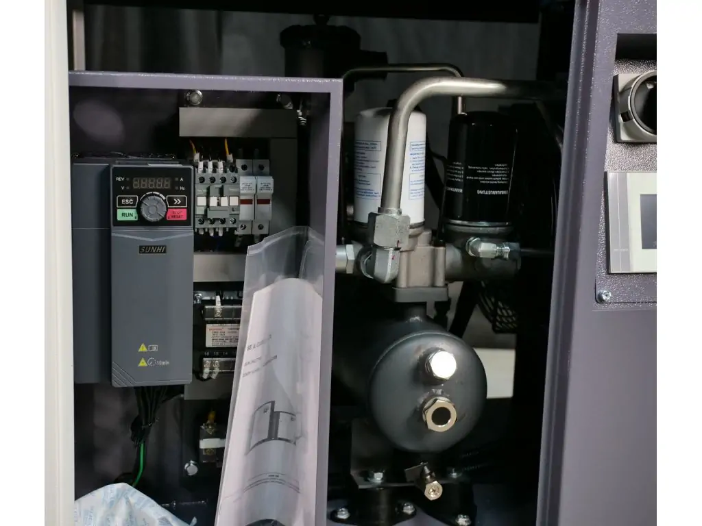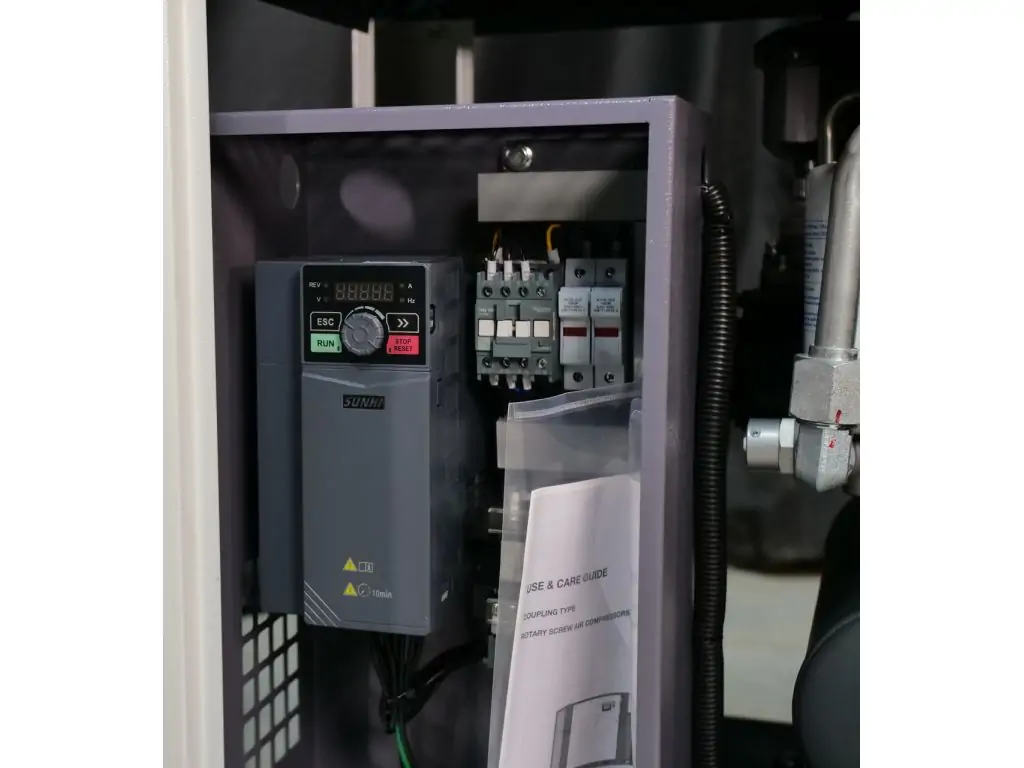 Двигун на постійних магнітах забезпечує високу питому потужність і вищий ККД. Пряма передача від двигуна до гвинтового блока мінімізує втрати енергії, а інверторне керування забезпечує плавний пуск і дозволяє регулювати оберти двигуна залежно від потреби у стисненому повітрі. Завдяки переліченим перевагам обладнання має збільшений робочий ресурс і відмінну енергоефективність. Такий компресор з економією енергії забезпечує стабільну та рівномірну подачу стисненого повітря, гнучкість у роботі і швидку окупність, що робить його надзвичайно вигідним придбанням.