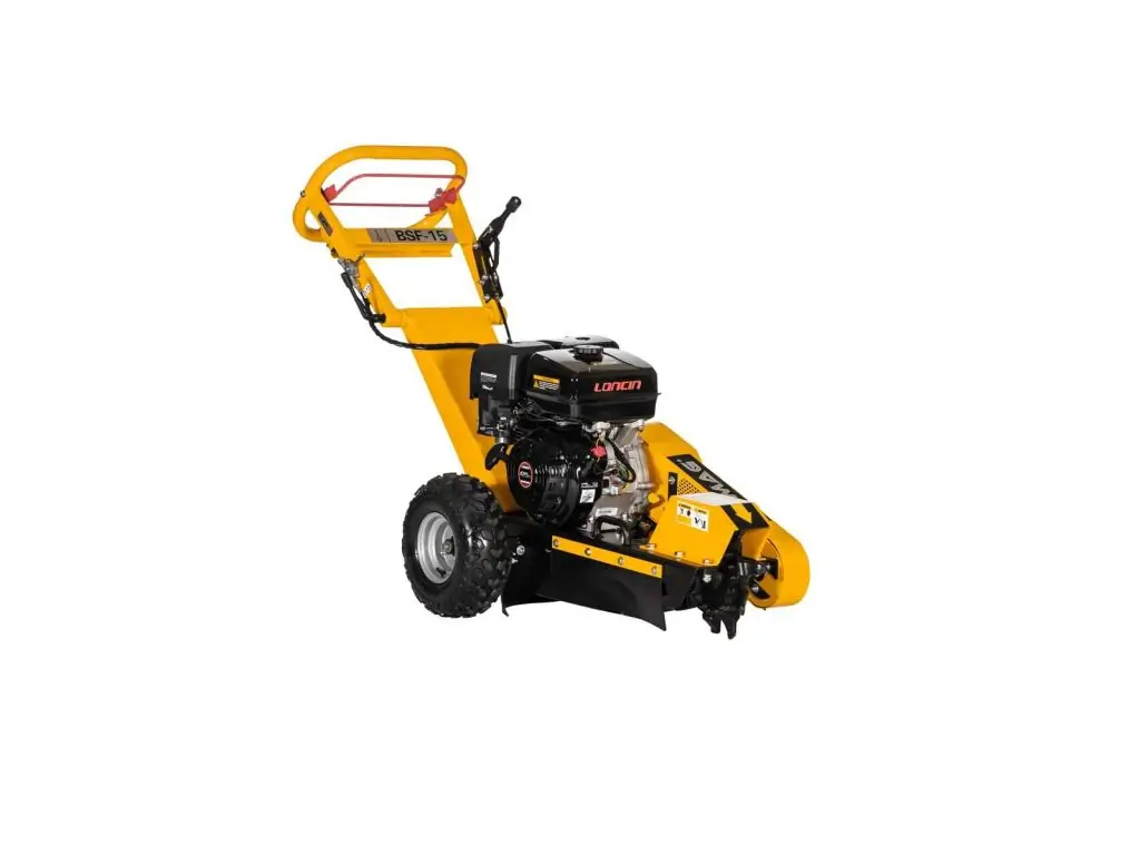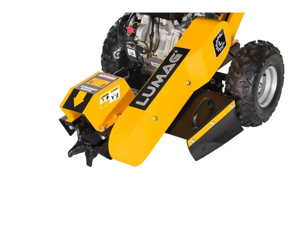 Подрібнювач пнів Lumag BSF 15 - це легке та мобільне обладнання для видалення пнів на обмежених ділянках, яке забезпечує подрібнення на 235 мм нижче рівня землі і до 600 мм над рівнем землі. Оснащений сталевою фрезою діаметром 30 см з 9 високоякісними твердосплавними зубами (3 лівих, 3 правих і 3 прямих). 4-тактний бензиновий двигун преміум-класу Loncin потужністю 9 кВт гарантує ефективне подрібнення деревини всіх порід, легко запускається і економно споживає паливо.