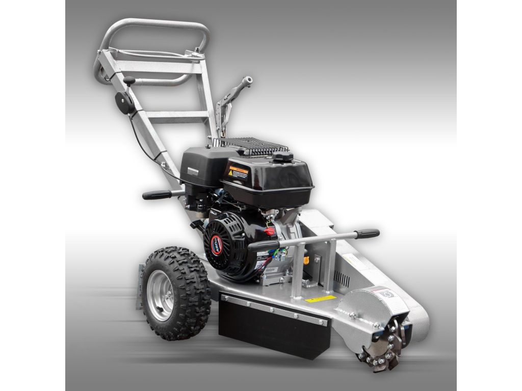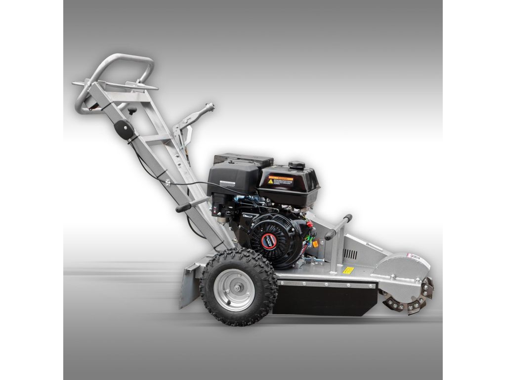 Площа різання залежить від кута наближення машини до пня, ширина становить 55 мм, а глибина може сягати 300 мм. 12 загартованих лез з вольфрамової сталі забезпечують відмінну якість роботи. 4-тактний бензиновий двигун LONCIN G420F потужністю 15 к. с. легко запускається за допомогою стартера і дозволяє вирішувати завдання підвищеної складності.