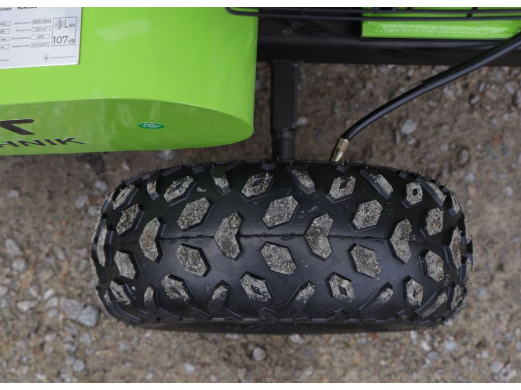 2 великих колеса з протекторами дозволяють вільно переміщати подрібнювач по будь-якій поверхні, а зручна ручка забезпечує комфортне управління технікою. Корпус виготовлений з високоякісних матеріалів, завдяки чому подрібнювач має тривалий термін служби.