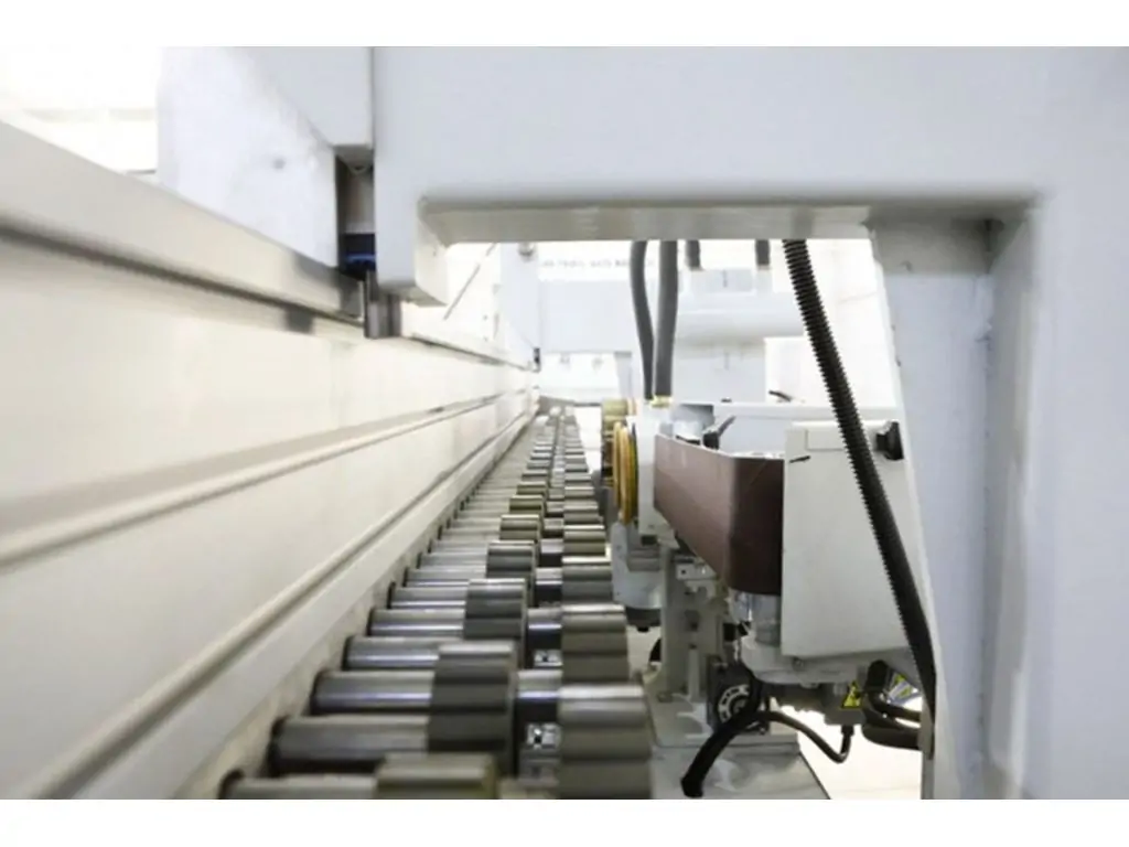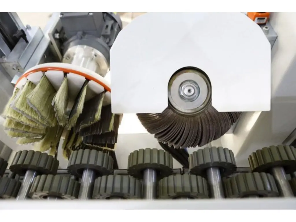 Щіткові шліфувальні машини з регульованою висотою, відстанню і швидкістю обертання на автоматичному кромкошліфовальному верстаті шліфують краї і кути по радіусу.
