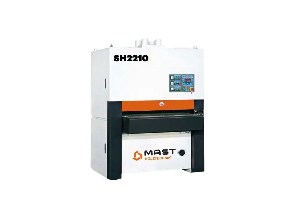 Калібрувально-шліфувальний верстат MAST Holztechnik SH2210 призначений для шліфування дерев’яних заготовок шириною до 1000 мм, товщиною 5-110 мм. Оснащений 2 валами діаметром 120 мм з незалежними двигунами - металевим калібрувальним і прогумованим шліфувальним, що дозволяє здійснювати чорнову і чистову обробку за один прохід. Швидкість подачі заготовки регулюється від 5 до 25 м/хв. Загальна потужність становить 27,87 кВт.