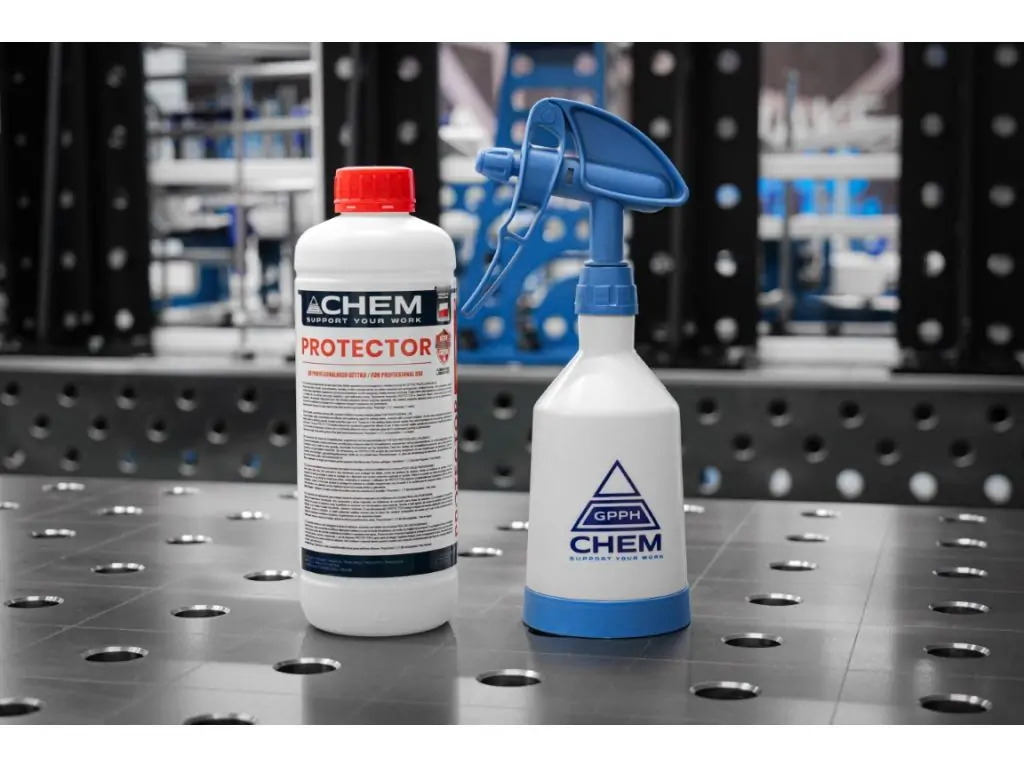 Водорозчинний, висококонцентрований та ефективний антиіскровий засіб для зварювальних столів, збагачений інгібіторами корозії. Цей базовий препарат захищає зварювальне обладнання, залишаючи на ньому спеціальний, міцний захисний шар. Завдяки ньому зварювальні столи залишаються без іскрових пошкоджень, що забезпечує більш точну, зручну та організовану роботу. Використання засобу PROTECTOR значною мірою захищає обладнання від наслідків експлуатації. Рідина не має запаху та не виділяє небезпечних для здоров'я летких речовин під час зварювання. Не містить олійних сполук, тому немає протипоказань для використання на матеріалах, які надалі підлягають фарбуванню або цинкуванню.