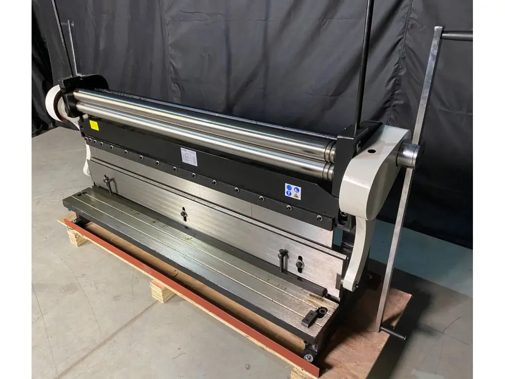 Комбінований верстат MAST Metalltechnik M-EF-1320x1.5 виконує одразу 3 функції - вальцювання, різання та згинання листового металу товщиною до 1,5 мм. Підходить для сталі, міді, латуні та алюмінію. Діаметр валків становить 76 мм. Мінімальний діаметр прокату - 114 мм, кут згинання - 90°. Підходить цей верстат для згинання листового металу 1320 мм. Максимальна ширина різу становить також 1320 мм. Фіксація листа в процесі різання здійснюється за допомогою притискного упору.