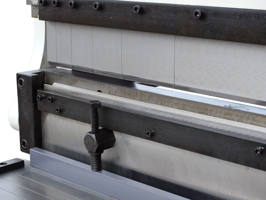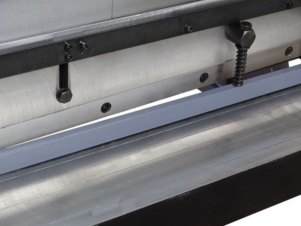Притискна балка має дев’ять змінних сегментів (3/ 4/ 5/ 6/ 10/ 17,5/ 22,5/ 25/ 38 см), які можна знімати або переставляти, створюючи різні конфігурації. Ножі гільйотини жорстко закріплені в масивному корпусі, що забезпечує рівну і точну лінію різу. Для різання деталей однакової довжини є регульований задній упор. Тривалковий механізм вальцювання дозволяє формувати циліндри з мінімальним діаметром 76 мм. Радіус згину встановлюється регулюванням верхнього валка. Всі вузли змонтовані в жорстку моноблочну конструкцію, що забезпечує відсутність мікроколивань і робить цей листогиб гільйотина вальці 3 в 1 компактним і точним. Довгі важелі та високоточна шарнірна система забезпечують велике механічне підсилення, плавність руху і довговічність верстата.