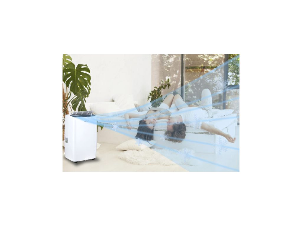Рекомендована площа охолодження - 30 кв.м. Три режими роботи дають змогу встановити комфортну інтенсивність повітряного потоку. Можна керувати кондиціонером з панелі управління, з пульта, який є у комплекті, та через мобільний додаток Tuya Smart / Smart Life (сумісний з Android і iOS). Через додаток можна запрограмувати час роботи пристрою.