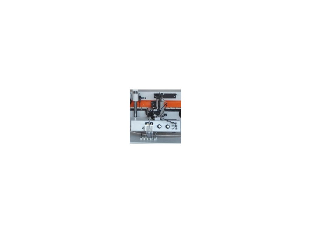 Верстат для склеювання кантів одностороння правостороннього виготовлення. Кантовиє ригель - до ø600 мм Приклеивающая частина з гранульованим розплав клеєм. Бак для клею під расплавляющим роликом. Нанесення клею за допомогою приклеивающего ролика в тому ж напрямку, що й рух деталі, що не вимагає установки в залежності від товщини матеріалу. Електронне регулювання температури клею. Автоматичне зниження температури клею в разі припинення роботи. Гільйотина для попереднього розрізання профілів PVC / ABS кантів – max.3x45. Зона притиску: трьох ролик – велика примусово приводиться в рух – притиск з пружинний. Вузол для вертикальна торцювання з двох HF двигуна – 200Hz, 12000rpm. Двох циркулярних дисках з розмірами ø110 ø32 х, Z=20 зуба. Вузол для верхнього і нижнього зняття звисів з вертикальної і горизонтальної налаштуванням з двох HF двигуна 200 Hz , ~12000 rpm. Фрезерні головки – Ø75; Z = 4; 15°, R2 та R3 /спецзамовлення /. Вузол обкатки кутів один з HF двигун – 200Hz, 12000rpm. Алмазна фрезерна головка - PCD CUTTER D68/61x d16 x 7 Z=4 R2 та R3 /спецзамовлення /. Вузол фрезерування на вході – двох HF двигунів – 1.1 кW і 0.75 kW, 12 000 min-1. Алмазні фрезерні головки – PCD CUTTER D. 60 x d20 x 48 Z 3+3. Вузол циклования кромка, R2 та R3 /спецзамовлення /. Вузол циклования клею. Вузол полірування – двох двигунів, двох полірувальні диски 2хø125mm, 2x0.18kW, 2800min-1.Центрально регулюється вручну верхній притиск. Транспортна система з ланцюгом. Несучі пластинки шириною 73 мм. Притискають ролики виготовлені з гуми з діаметрів 70 мм, встановлені на підшипнику. Опорна балка з ролики – нерухома. Пульт управління в передній частині машини. Температура навколишнього середовища + 18° max + 35°C.