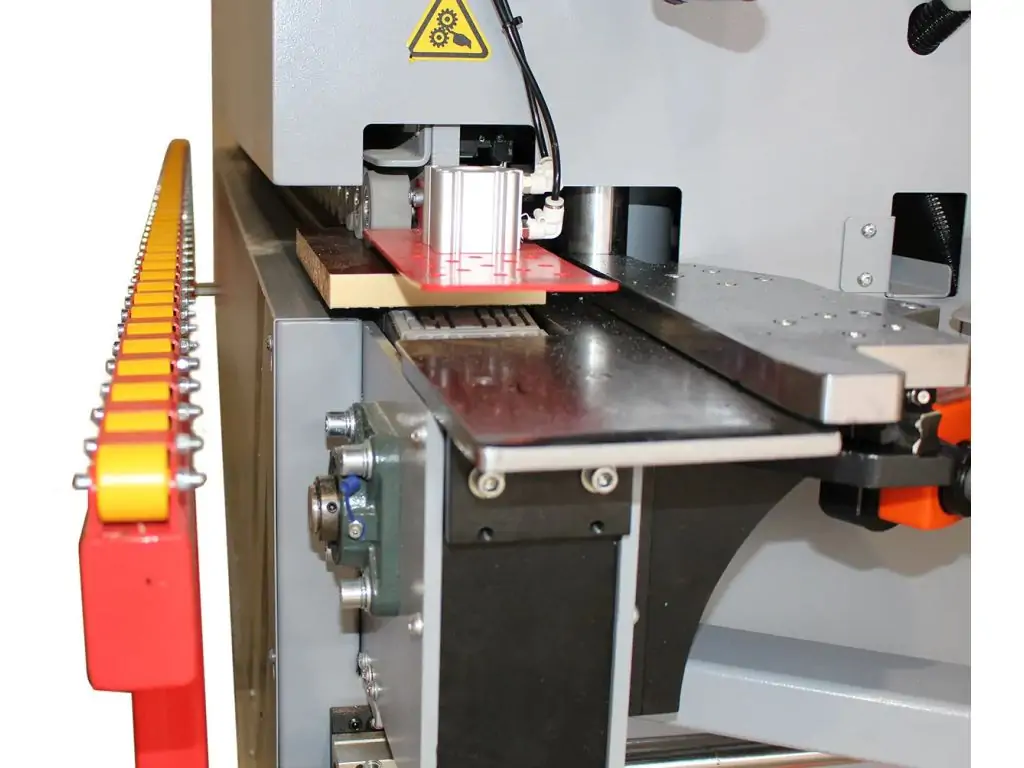 - Зносостійкі черевики у поєднанні з гумовими притискними роликами забезпечують точне транспортування заготовок.