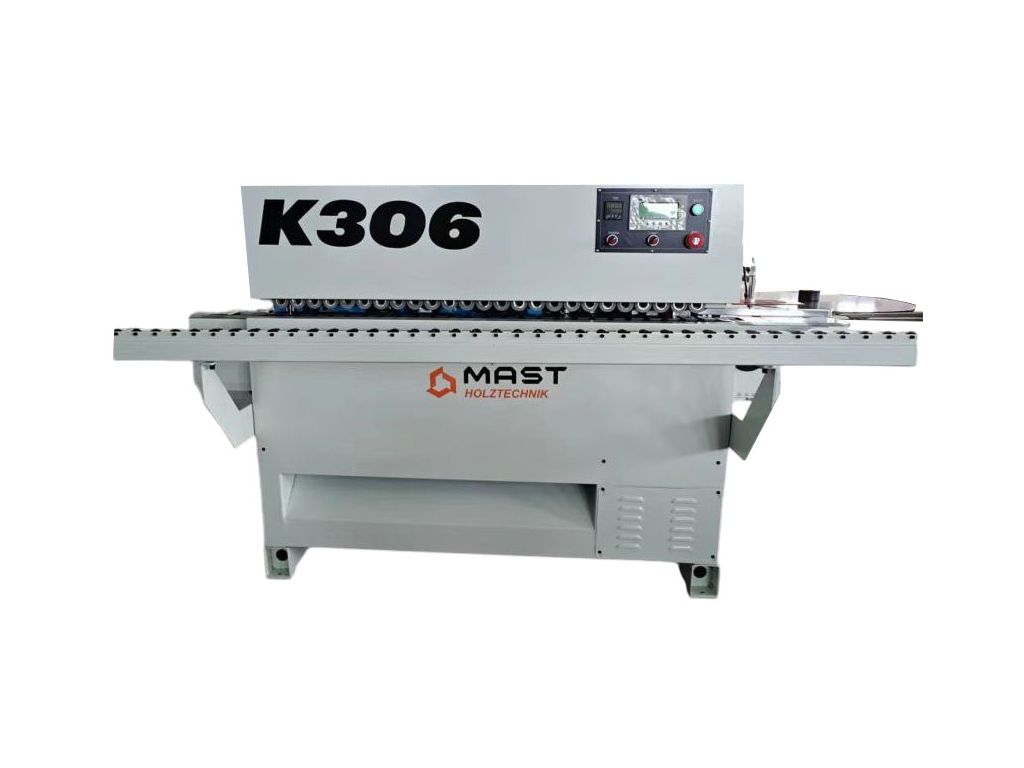 Кромкооблицювальний верстат MAST Holztechnik K306 якісно виконує прямолінійну поклейку меламінової, ПВХ та ABS кромки на меблеві деталі з ЛДСП, МДФ і фанери. Оснащений основними робочими вузлами. Пульт керування українською мовою забезпечує зручне і просте управління кожним вузлом.