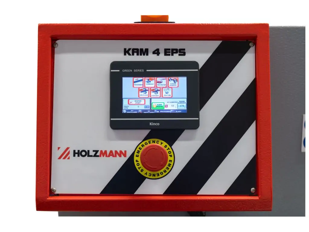 Кромкооблицювальний верстат Holzmann KAM 4EPS_400V - це автоматичний верстат прохідного типу для одностороннього облицювання меблевих щитів кромковим матеріалом товщиною 0,4-3 мм. Оснащення основними робочими вузлами дозволяє виконувати повний цикл обробки за один прохід. Подача заготовки автоматична, зі швидкістю 10 м/хв. Загальна потужність - 6470 Вт (3 фази). Товщина заготовки - 8-42 мм.
