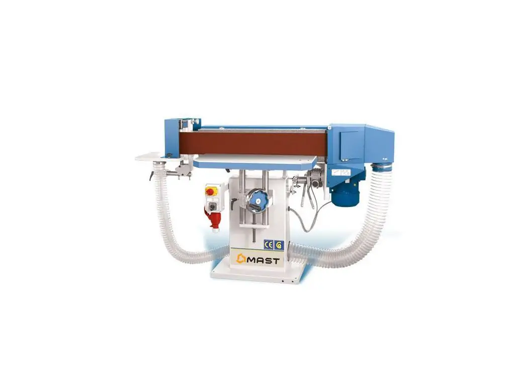 Шліфувальний верстат Mast KSM 2600 призначений для шліфування заготовок з масиву деревини, шпону і плитних матеріалів за допомогою абразивної стрічки шириною 150 мм і довжиною 2600 мм. Дозволяє обробляти як плоскі поверхні, так і торці та кромки, що підвищує гнучкість виробництва. Нахил шліфувального вузла від 90° до 45° дає змогу виконувати обробку під кутом. Трифазний асинхронний двигун потужністю 3 кВт/ 4 кВт зберігає стабільний крутний момент навіть під високим навантаженням, що забезпечує ефективне шліфування твердих матеріалів без втрати продуктивності.