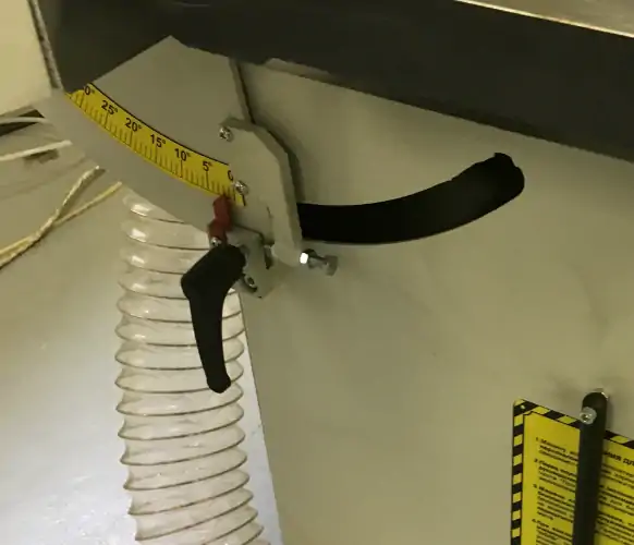 НАХИЛ ШЛІФУВАЛЬНОГО ВУЗЛА Система нахилу шліфувального вузла, що застосовується під час шліфування кромок під кутом, зняття фасок на виробах. Має шкалу для точного виставлення кута. |