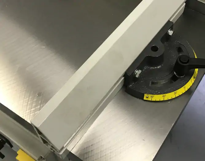 НАПРЯМНА ЛІНІЙКА НА СТОЛІ Додатковий упор, необхідний при проведення операцій зі знімання фасок з торців та кромок заготовок. Дозволяє розмістити заготовку під потрібним кутом. |