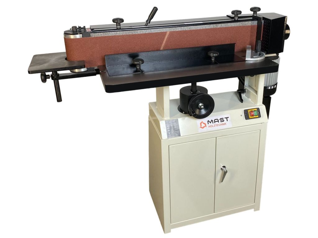 Стрічково-шліфувальний верстат по дереву MAST Holztechnik H-SH2315 400V використовується для контурного і поверхневого шліфування заготовок з деревини і плитних матеріалів. Особливості конструкції дозволяють горизонтальну і вертикальну роботу. Шліфувальний вузол має можливість нахилу під кутом до 45°, що дає змогу з точністю виконувати торцеве і кромкове шліфування. Для обробки криволінійних поверхонь використовується додатковий бічний стіл.