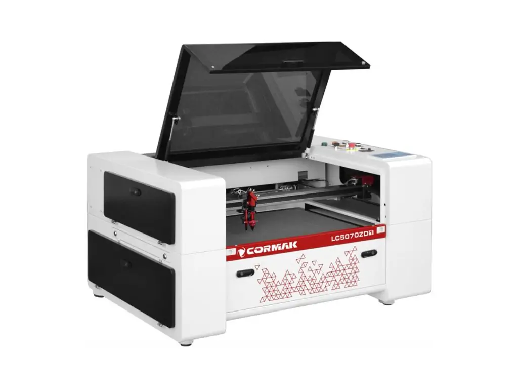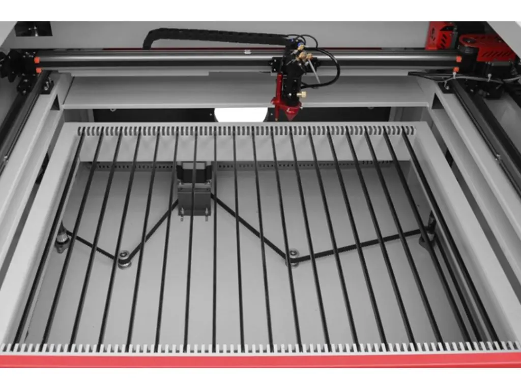 У вартість лазерного плоттера входять, серед іншого: червона точка, стільникова накладка і ножовий стіл, витяжка: дно з ящиком для відходів, вбудований компресор, вентилятор, охолодження, яке можна запустити під час роботи.