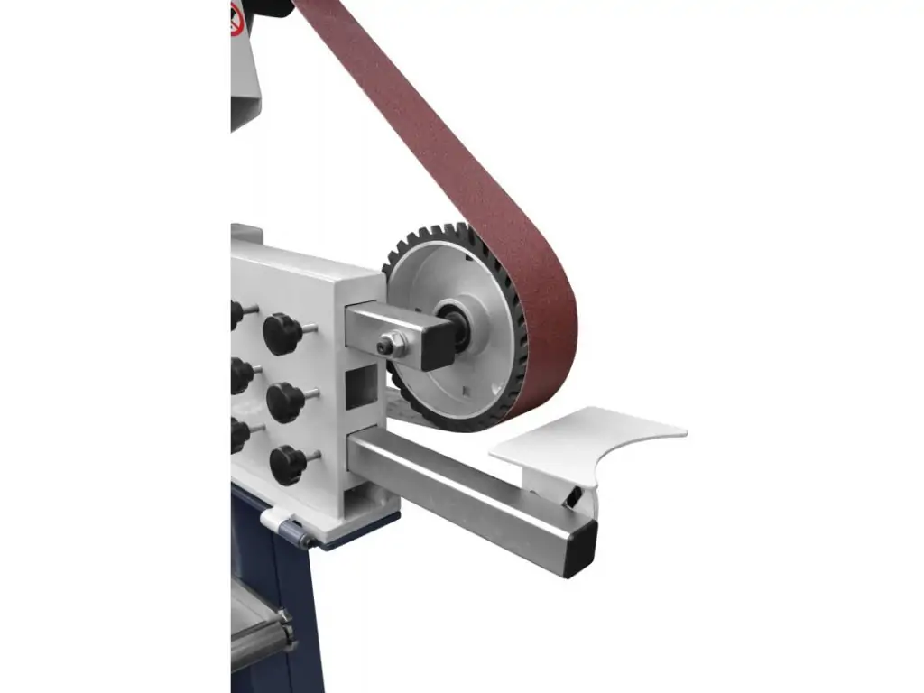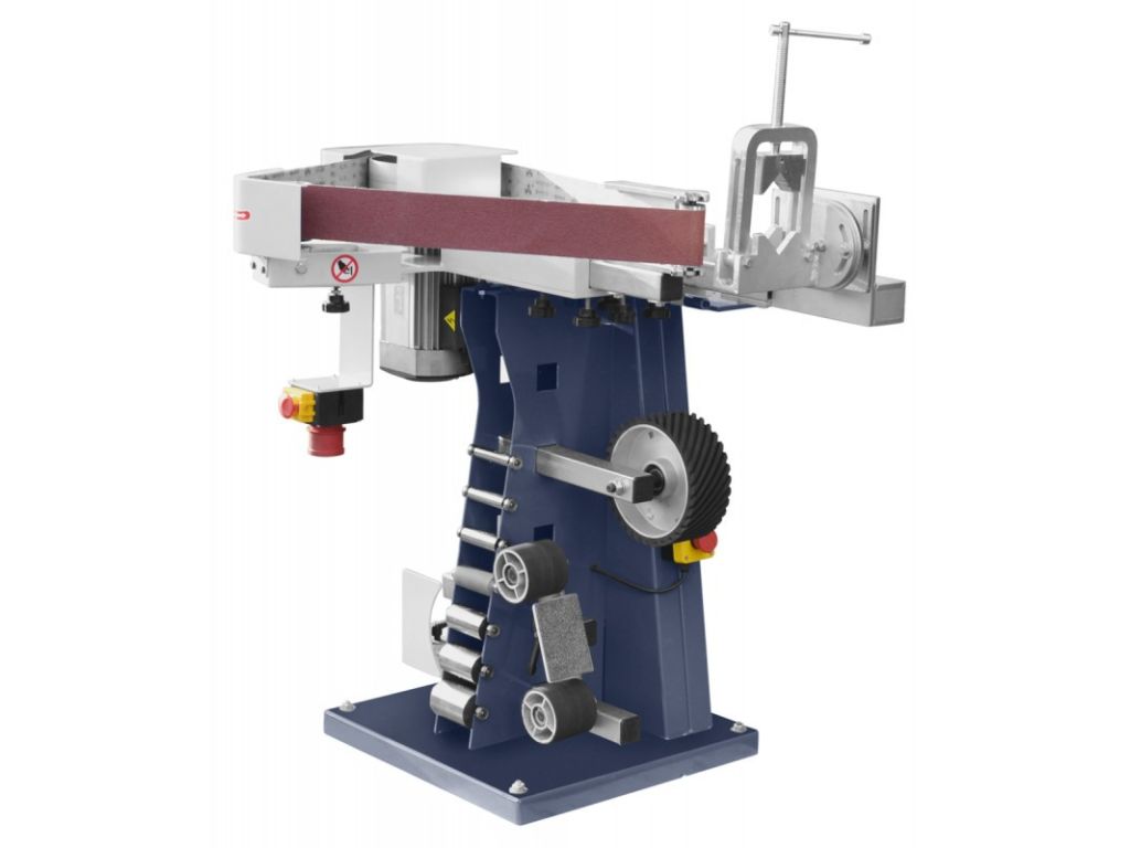 2 швидкості шліфувальної стрічки, 14,5 м/сек і 29 м/сек, дозволяють підібрати оптимальний режим роботи. Прогумоване покриття ведучого колеса забезпечує плавний рух стрічки і тиху роботу верстата. Міцна підлогова конструкція з якісних матеріалів стійка до вібрацій і зношування, завдяки чому цей верстат шліфувальний стрічковий стабільний у роботі і має тривалий термін служби.